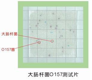 對(duì)測(cè)試片進(jìn)行觀察,呈紫紅色的菌落為大腸桿菌O157;呈藍(lán)色的菌落為其他大腸菌群。出現(xiàn)陽性菌落的樣本,最好用其他更為可靠的方法進(jìn)行驗(yàn)證,沒有條件的至少要再取樣重復(fù)檢驗(yàn)一次。