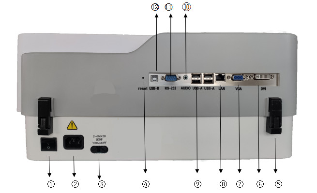 ②內(nèi)置熱敏打印機:塑料蓋板,使用內(nèi)置熱敏打印機打印報告時的出紙口,打開蓋板可以更換打印紙。